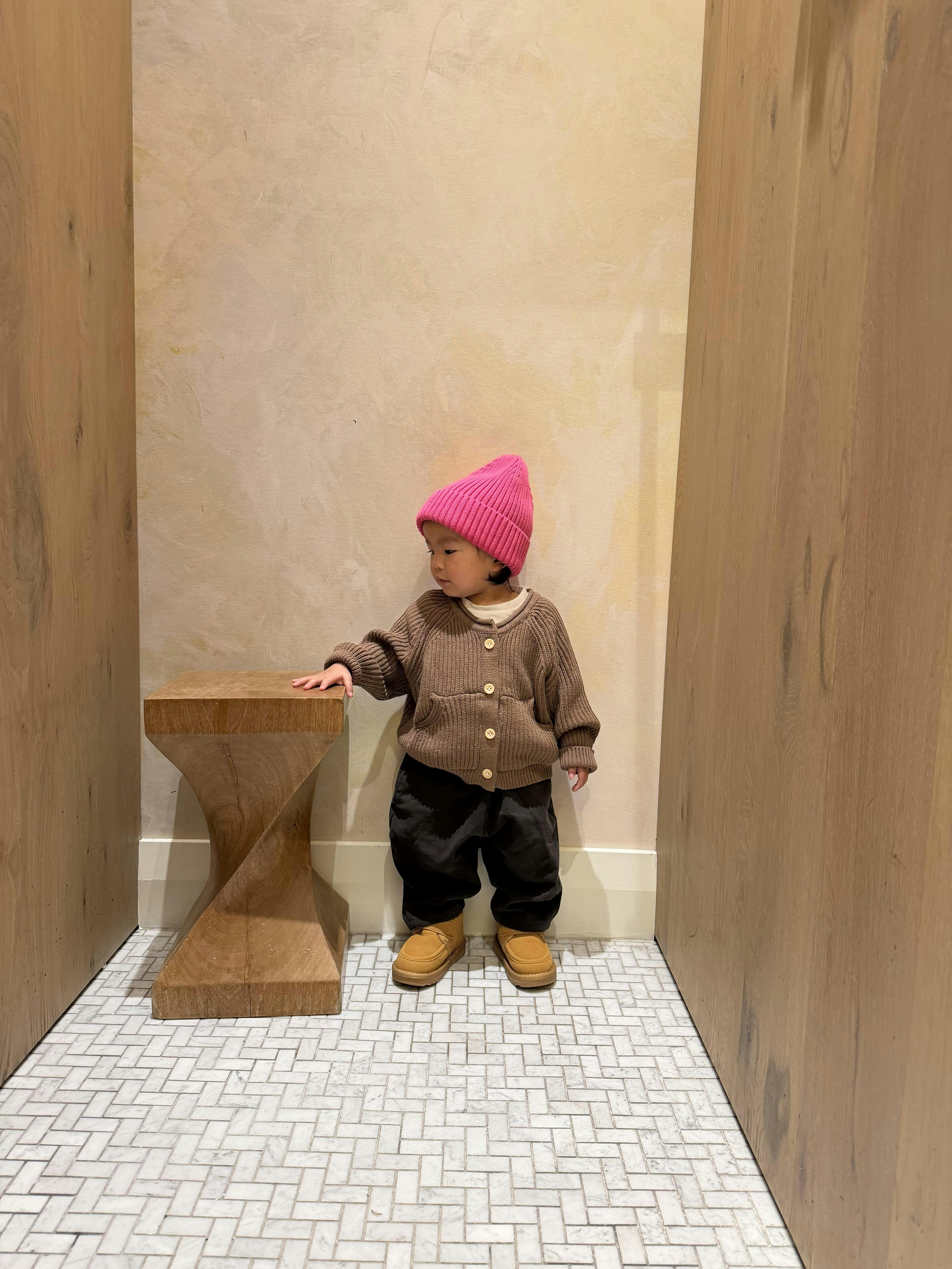 Our knit button-up cardigan is designed with comfort and play in mind. Made with a cotton and acrylic blend, It’s soft, breathable, and perfect for layering through every season. Plus it's composition helps holds shape, makes it easy to machine wash, and is a practical everyday knit not too precious to keep in the closet.